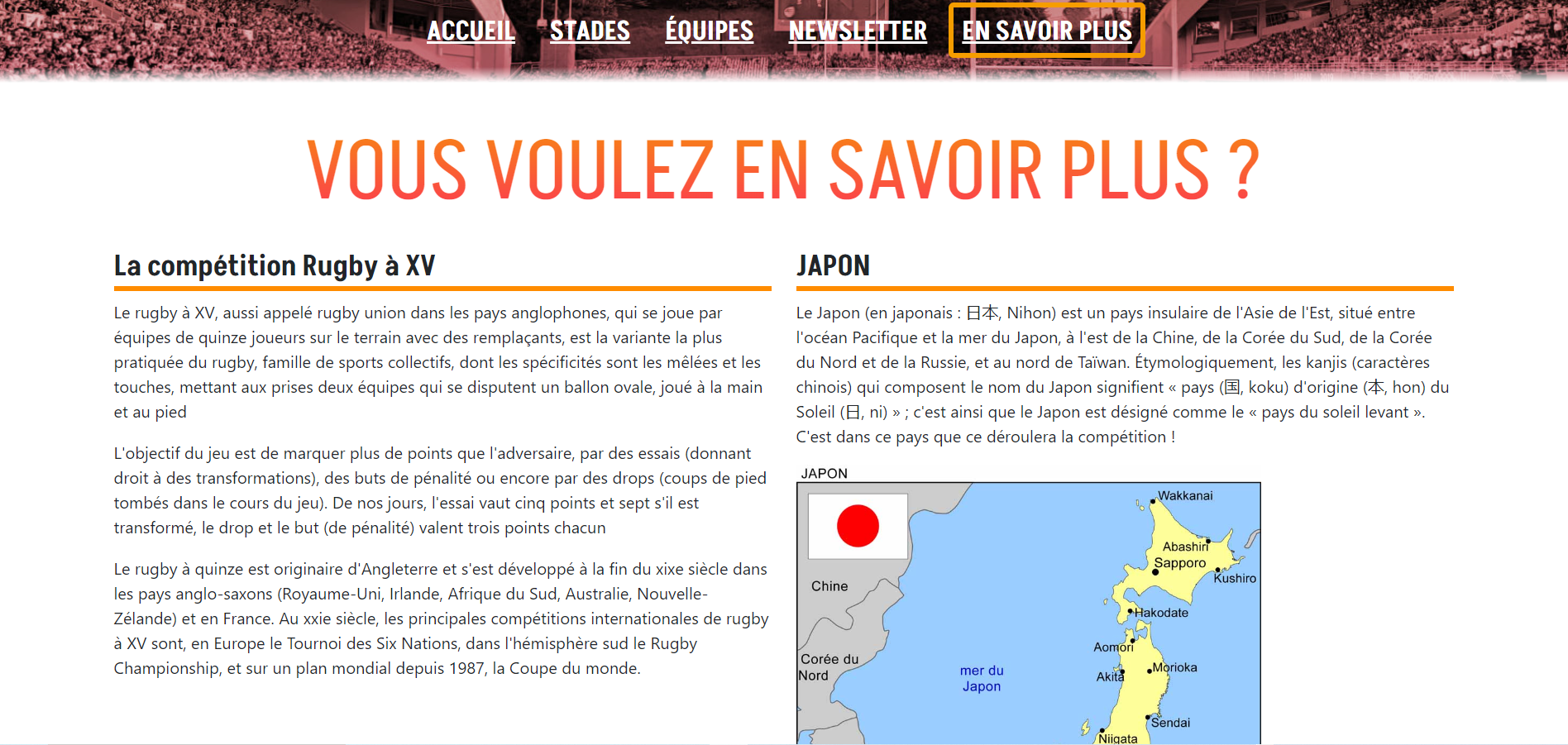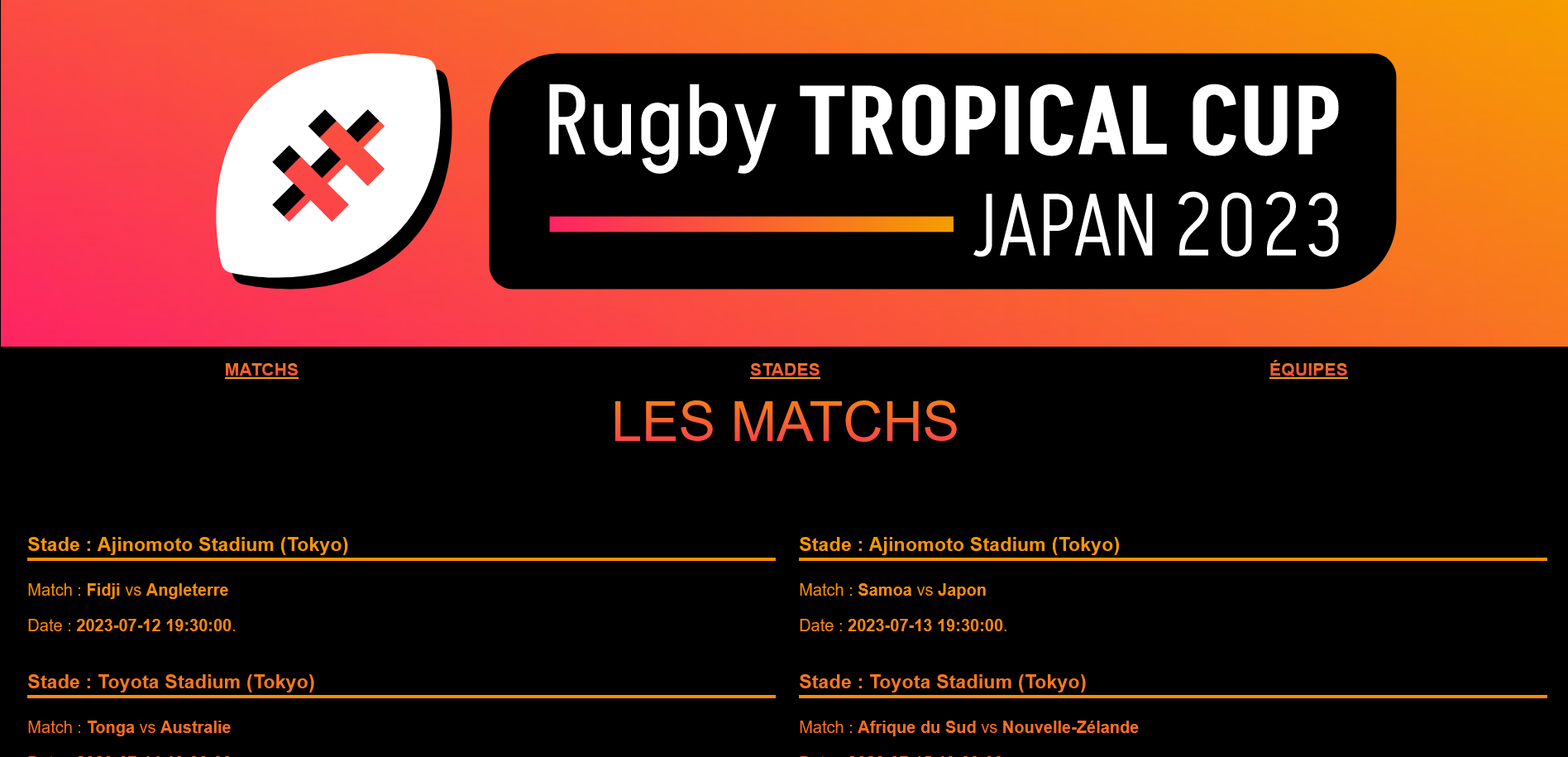 Créer une page mobile qui affichera de manières stylisée les données récupérées dans l'API afin d'afficher les matchs, les équipes, les stades