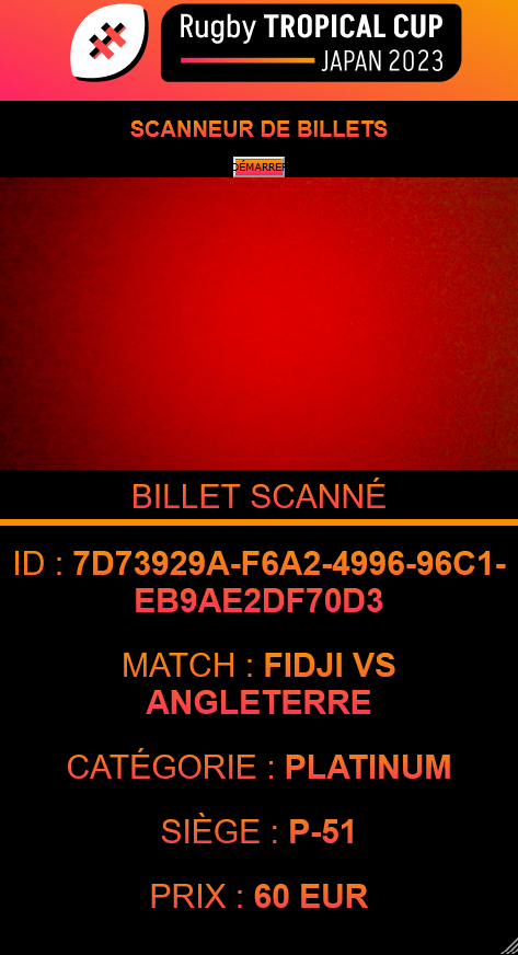 Application web mobile concernant la coupe du monde de Rugby 2023. Il s'agit de proposer un service mobile qui permet de scanner des billets.